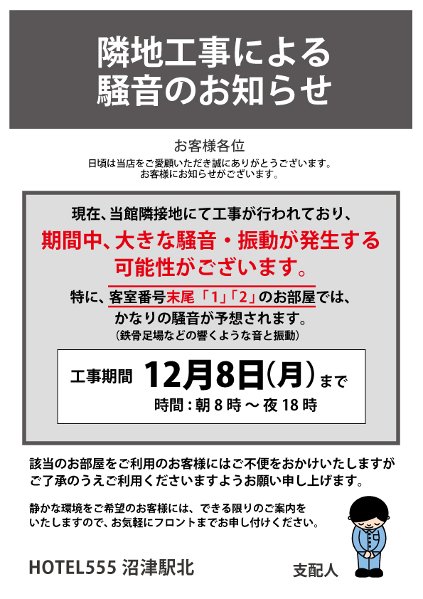 HOTEL555 沼津駅北 隣地工事による騒音のお知らせ