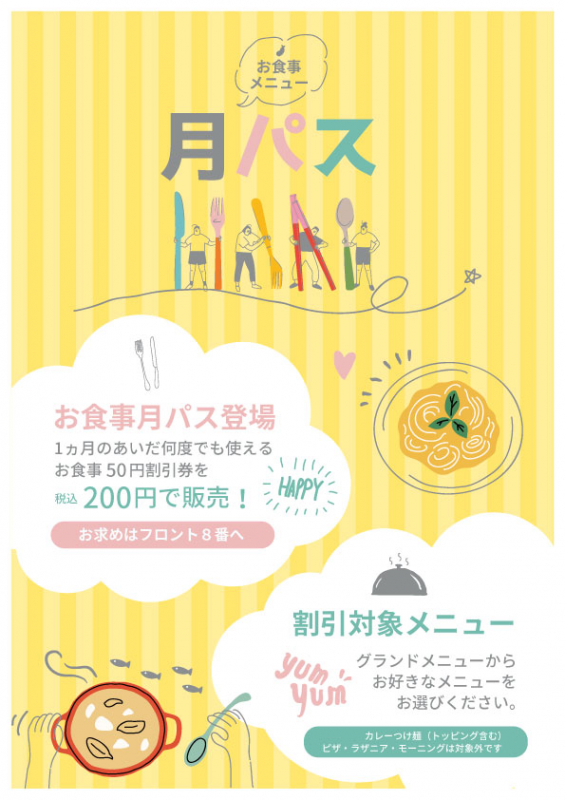 グランドメニューがいつでも50円割引になる割引券を、200円で販売。