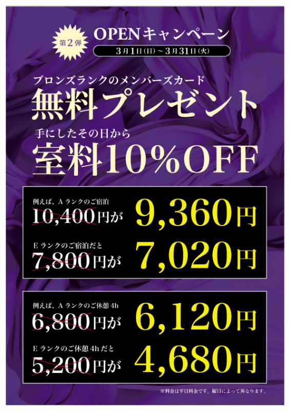 3月1日より、HOTEL555 秦野 -夢 YUMEMI-で