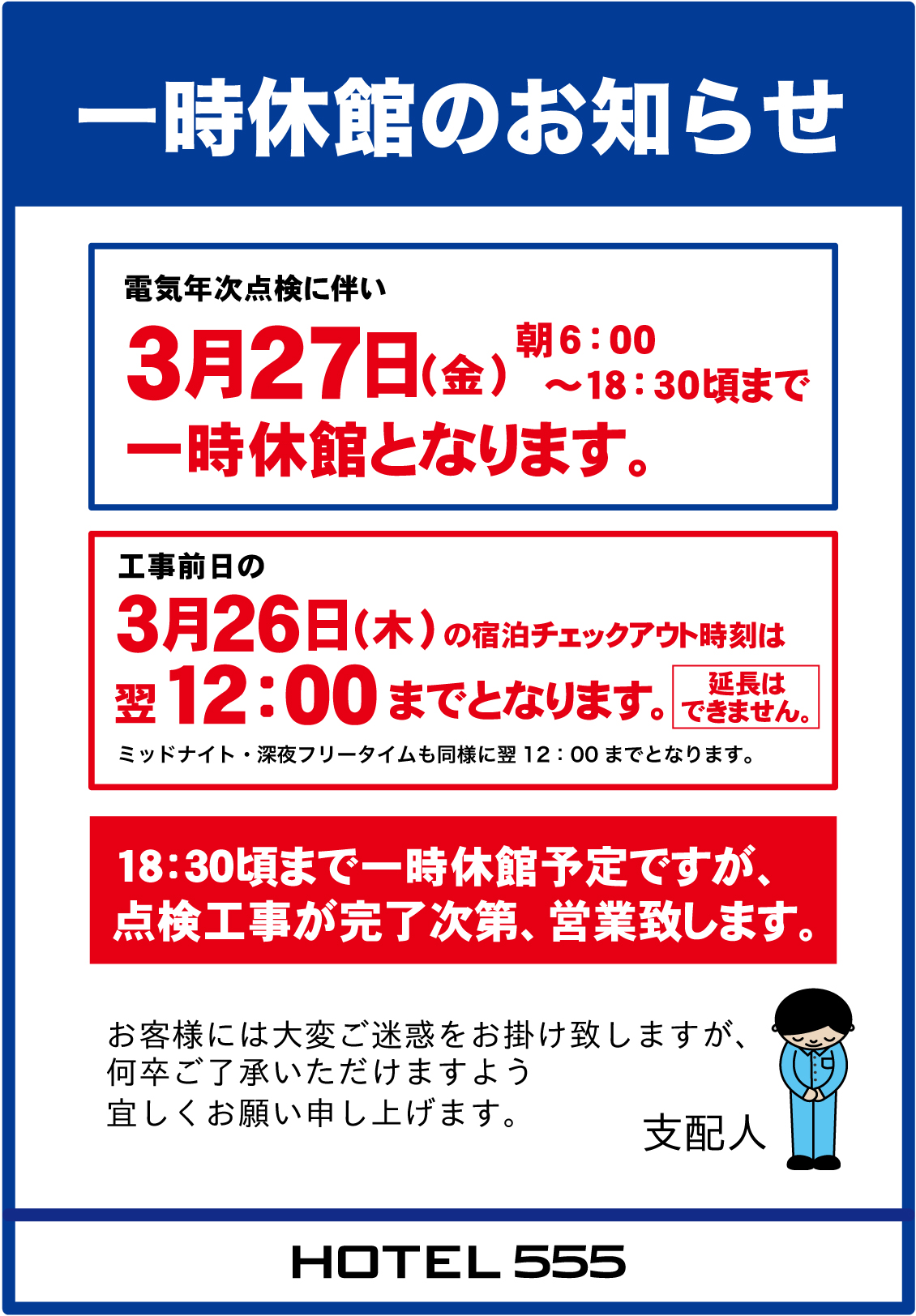 HOTEL555 伊豆長岡 3月27日(金)一時休館のお知らせ