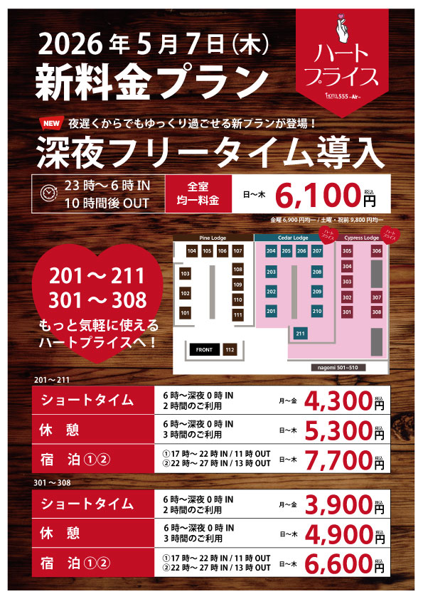 5月7日(木)HOTEL555~Air~山形店【新料金プラン導入のお知らせ】