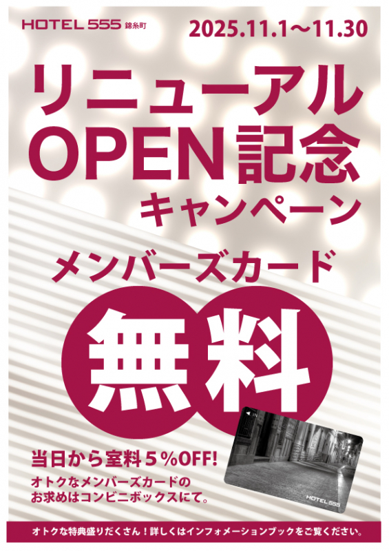 日頃よりHOTEL555錦糸町をご愛顧いただき、誠にありがとうございます。