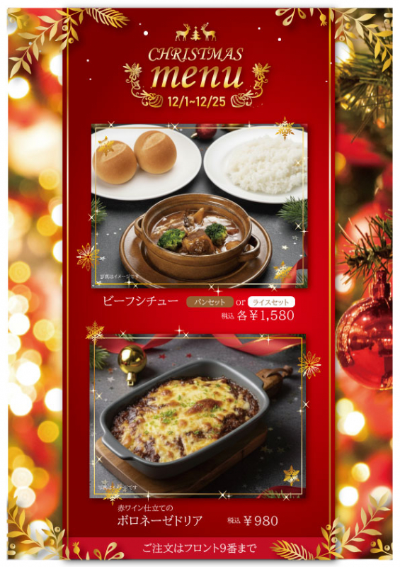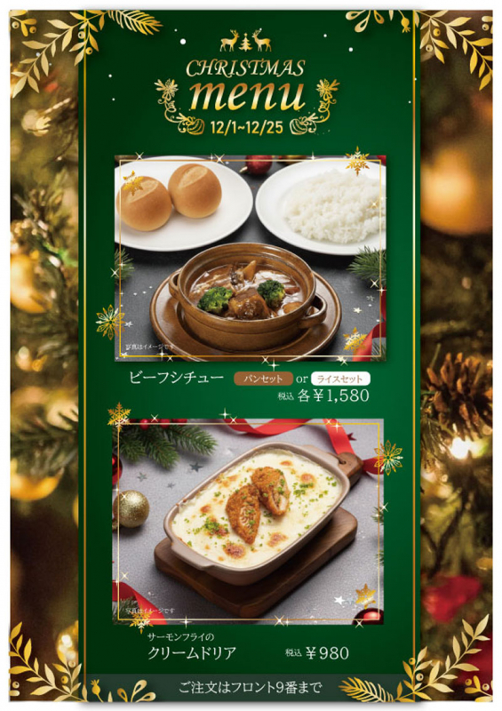クリスマスらしい温かさと、やさしいコクが引き立つ限定メニューです。