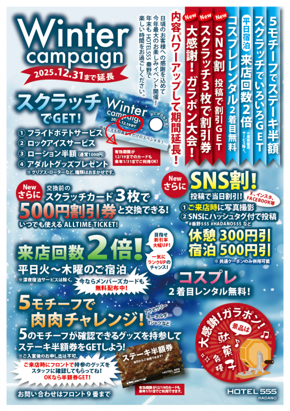 開催中の Winter campaign が、ご好評につき 12月30日まで期間延長!