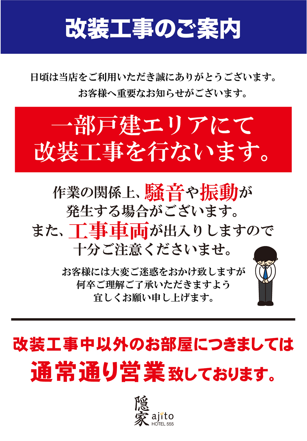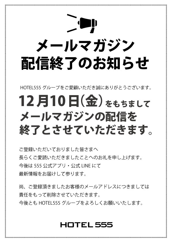 平素よりHOTEL555 沼津駅北をご愛顧いただき、誠にありがとうございます。