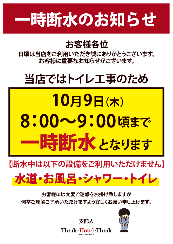 該当のお部屋をご利用のお客様にはご不便をおかけいたしますが